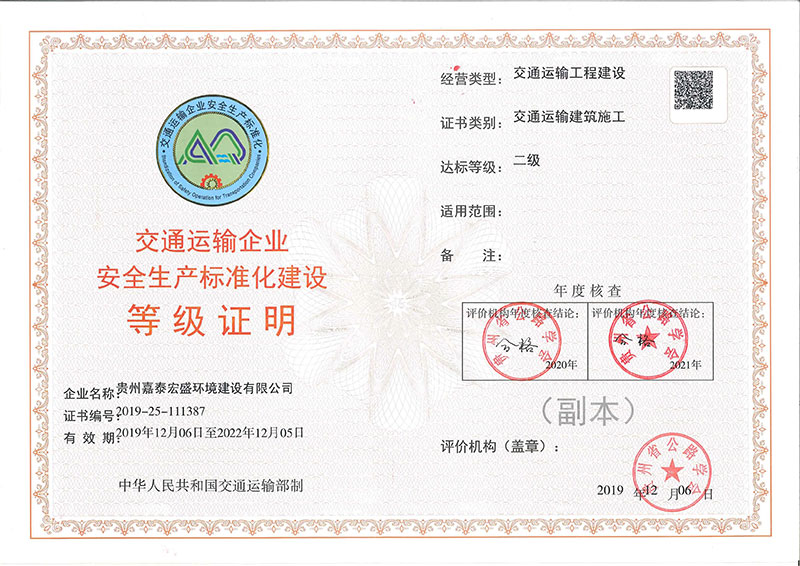 2021年公路安全达标证书<